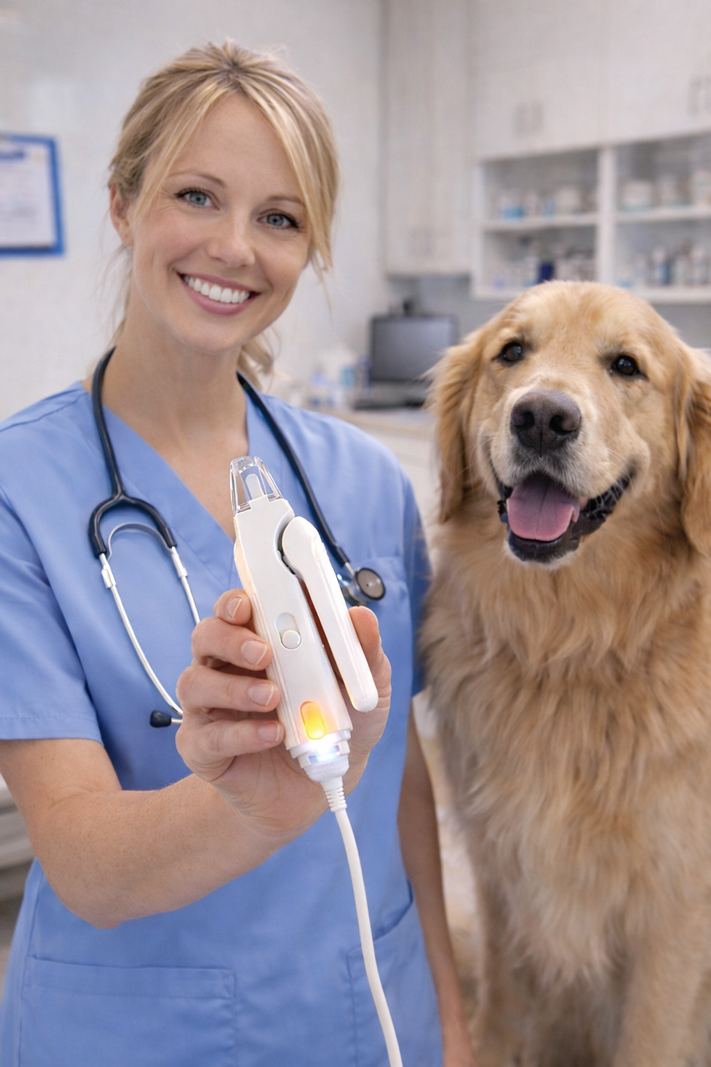 KloVision är ett uppskattat val bland veterinärer. Den kraftfulla LED-lampan lyser upp klon och gör pulpan tydlig – även på mörka klor – vilket minskar risken för felklipp.